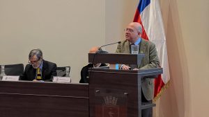 La jornada finalizó con la presentación “Identidad Judía e sociedad israelí”, a cargo del Director de la Academia de Guerra Naval, Capitán de Navío, Rafael Letelier Widow, quien además de una extensa carrera operativa, posee los grados de Magíster en Ciencias Navales y Marítimas entregado por la Academia de Guerra Naval y de Master at Arts en Estudios de Defensa en Kings College London, a lo que se suma su experiencia en el tema, ya que durante los años 2022 y 2023 se desempeñó como Agregado Naval a la Embajada de Chile en Israel.