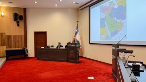 Tras un detallado resumen de la conformación étnica y sociocultural de los primeros habitantes del Estado de Israel, el Comandante Letelier, hizo una diferenciación entre los distintos grupos que componen la actual sociedad israelí, su coexistencia y como se relaciona el gobierno de turno con ellos. Asimismo entregó su testimonio de lo que se vivió en el país el 7 de octubre de 2023, fecha en la que era el Agregado Naval de Chile en Israel.La jornada continuó con una interesante ronda de preguntas, en la que los asistentes pudieron debatir con los expositores, tras la cual, el Comandante Letelier agradeció a los expositores por su participación en esta actividad.