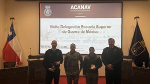En una jornada de intercambio académico, la Academia de Guerra Naval recibió este 5 de junio a representantes de la Escuela Superior de Guerra de México, oportunidad en que se llevaron a cabo una serie de exposiciones acerca de la Armada de Chile y de los procesos docentes de la Academia de Guerra Naval.