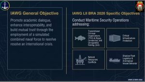 Este ejercicio, de carácter anual, tiene por objetivo fortalecer el intercambio académico en el ámbito del diseño y la planificación de operaciones distintas a la guerra en escenarios marítimos, en el marco de un mandato de las Naciones Unidas.