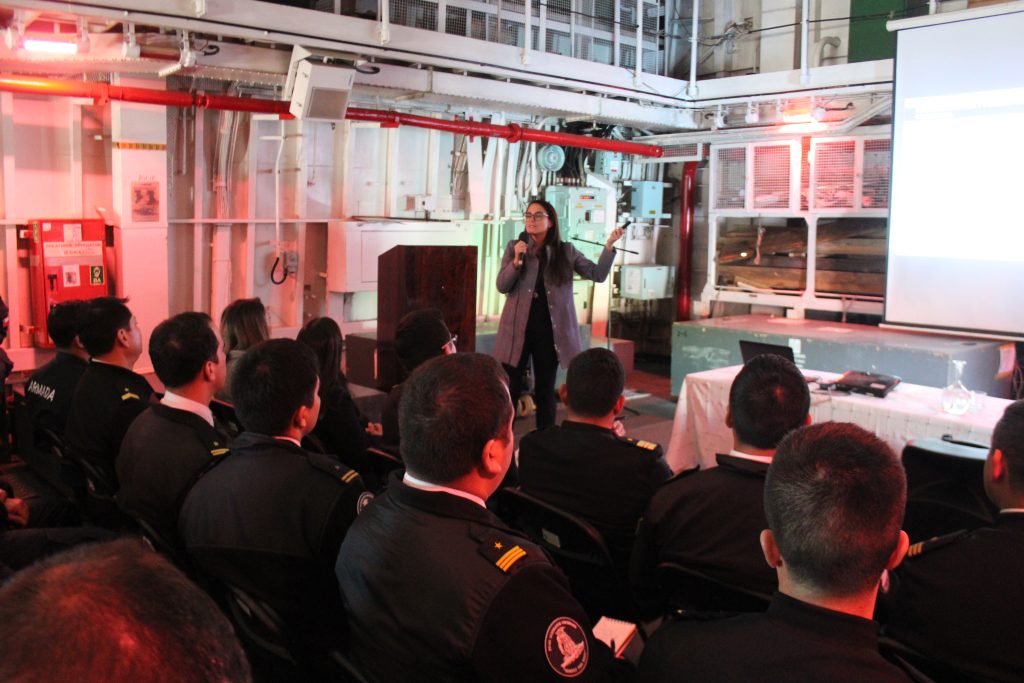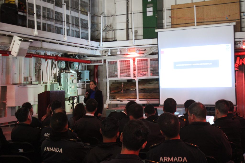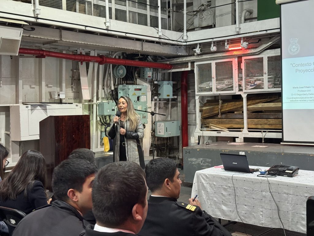 El pasado 27 de mayo las profesoras de la Academia de Guerra Naval, María José Piñeiro, María Noemí Zamora y Natalia Alviña, dictaron una conferencia en apoyo a las actividades de la Fragata Almirante Cochrane, entregando conocimientos a la dotación en el ámbito de las relaciones internacionales, el derecho y la ciencia política.