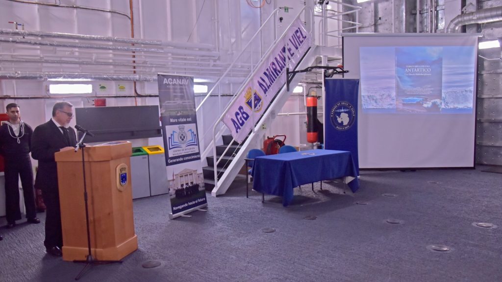 En una ceremonia realizada a bordo del rompehielos «Almirante Viel», la Academia de Guerra Naval presentó su nuevo libro «Territorio Chileno Antártico: Una Mirada Multidisciplinaria». Este esfuerzo es liderado por el Centro de Estudios Navales y Marítimos (CENAM) de la Academia de Guerra Naval y la División Antártica del Estado Mayor General de la Armada, y busca promover una comprensión integral del territorio antártico chileno, abarcando aspectos históricos, políticos, científicos y operacionales.