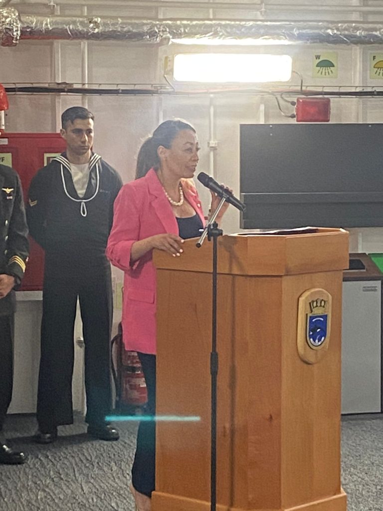 El lanzamiento fue presidido por el Comandante en Jefe de la Armada, Almirante Juan Andrés De La Maza, quien destacó el compromiso de la Institución con la Antártica, una relación que se extiende por más de 100 años.