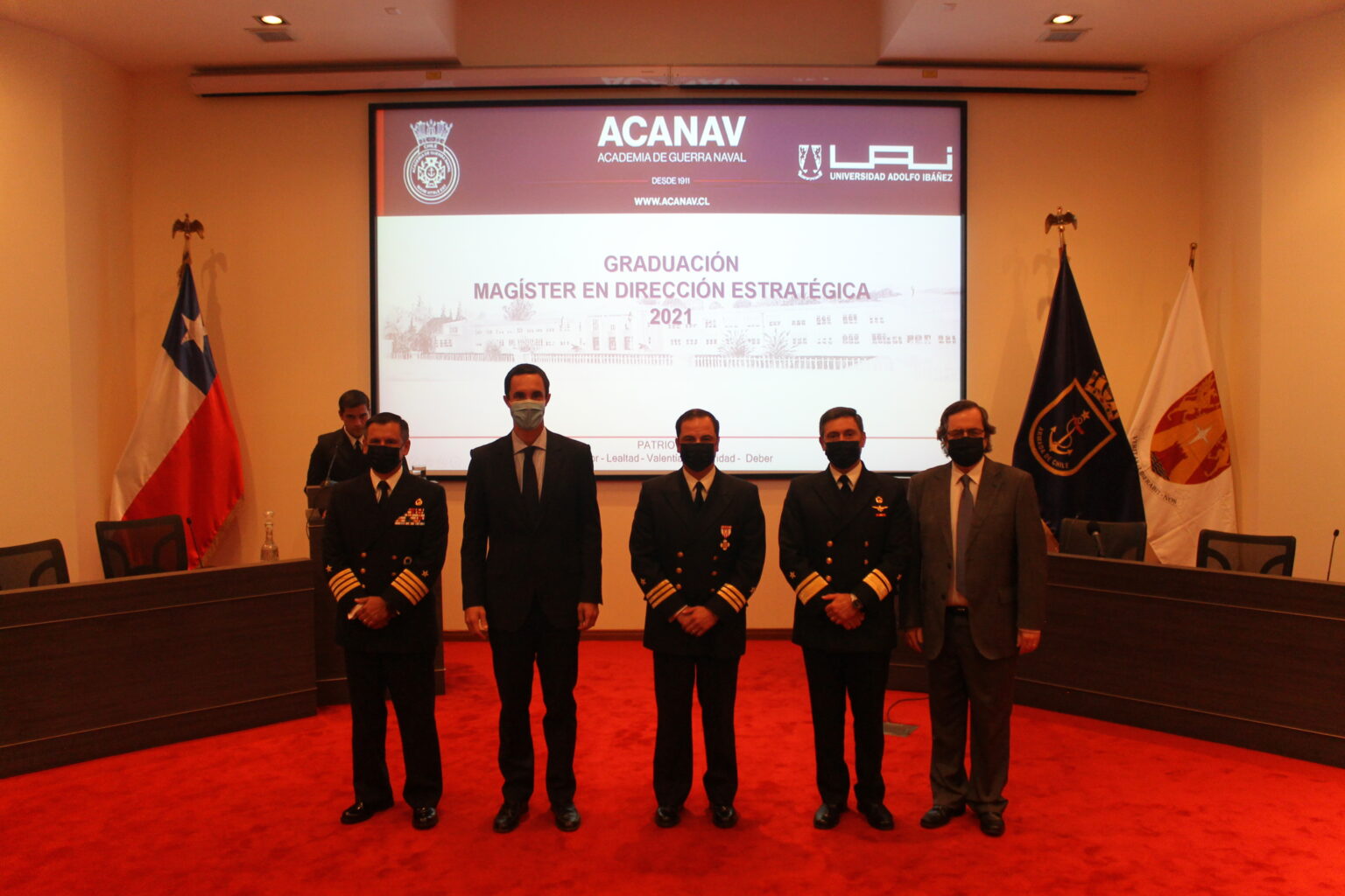 Viña del Mar, con una ceremonia realizada en el Auditorio «Almirante Justiniano» de la Academia de Guerra Naval, 20 oficiales de la Armada se graduaron