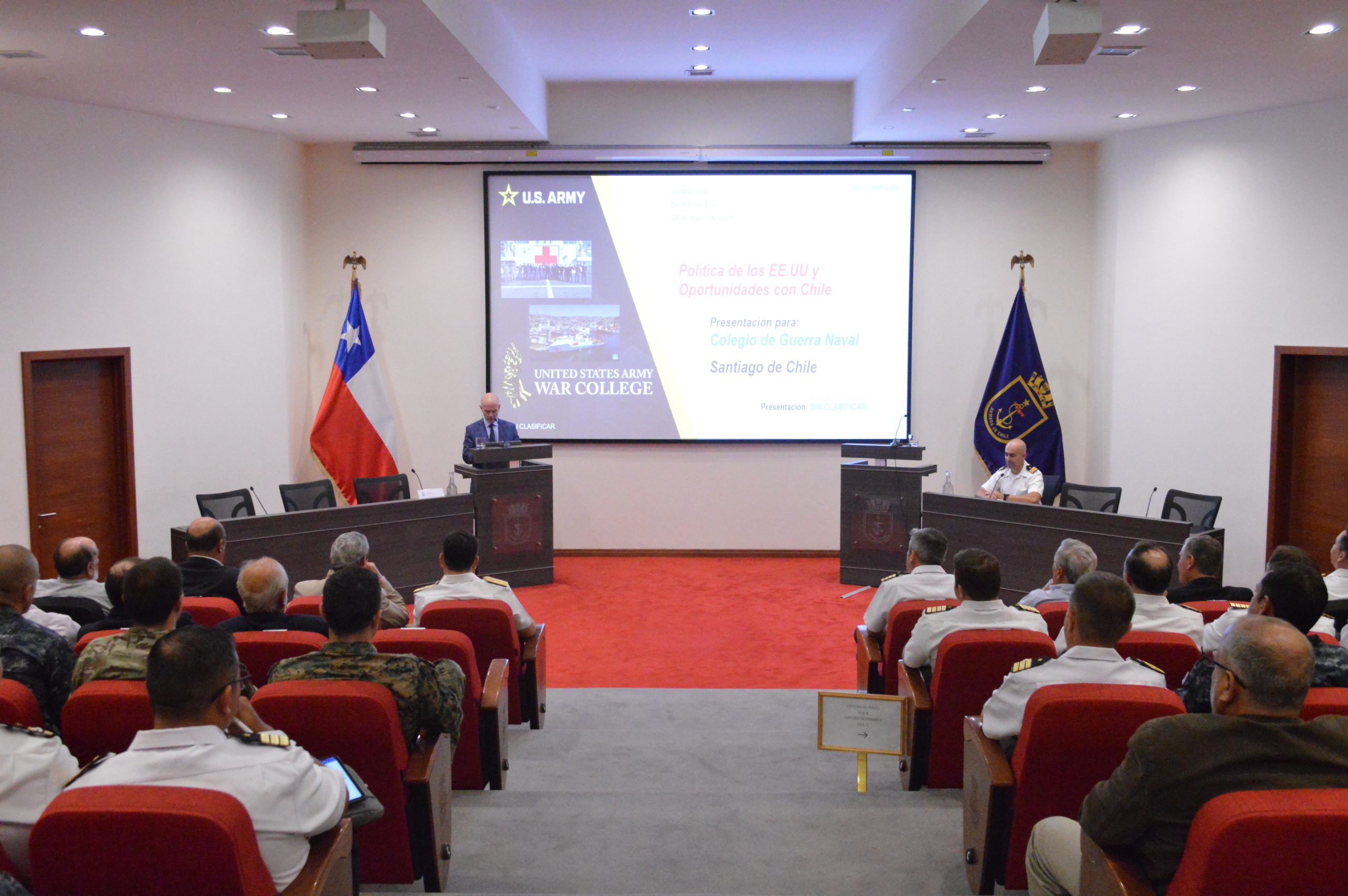 La actividad que se realizó para abordar temáticas desde la perspectiva militar-naval y desde el prisma civil en paralelo, con el fin de producir una interacción que permita enriquecer el conocimiento de forma multidisciplinaria, a través de la discusión académica, fue presidida por el Director de Educación de la Armada, Contraalmirante Sebastián Gutiérrez Casas.