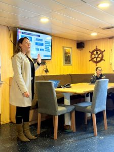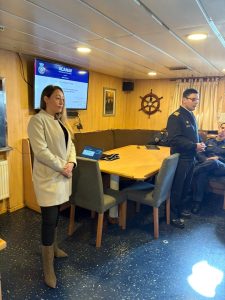 La primera exposición fue dictada por la profesora civil Dra. (C) María José Piñeiro Tejo, quien abordó el tema «Más allá del horizonte: Oceanopolítica, mar presencial y la misión del OPV Toro», enfatizando el rol estratégico de la Armada en la protección de los intereses marítimos del país. En su discurso, exploró el concepto de oceanopolítica como una herramienta central para entender el nexo entre soberanía marítima, desarrollo nacional, una presencia naval robusta y la importancia del patrullaje oceánico más allá de las 200 millas.